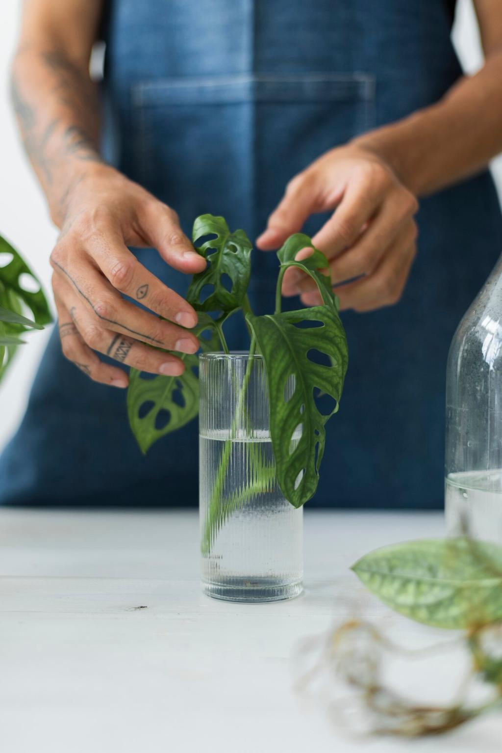 Nutze Wandregale, Pflanzenleitern und Hängeampeln, um grüne Filter nach oben zu bringen. Efeutute und Grünlilie eignen sich perfekt für luftige Kaskaden. Das spart Stellfläche und verteilt die Wirkung im Raum. Poste ein Foto deiner grünen Wand und inspiriere andere Leserinnen und Leser!