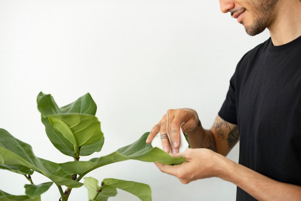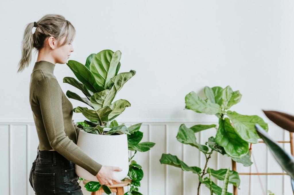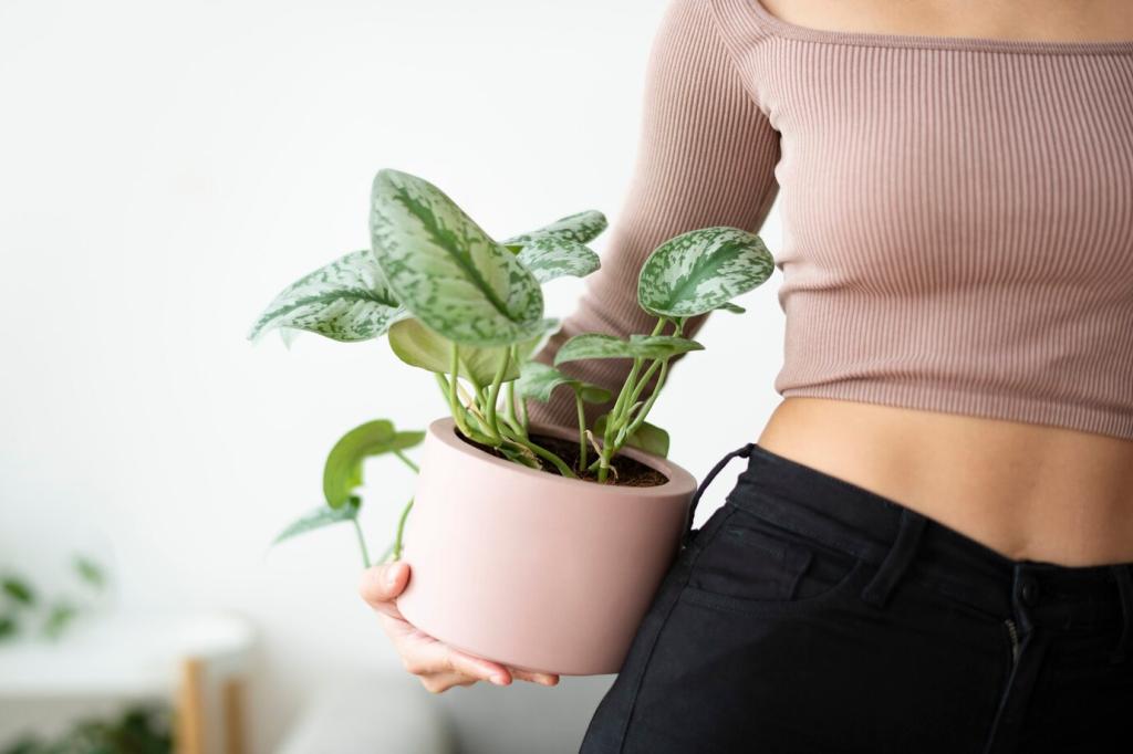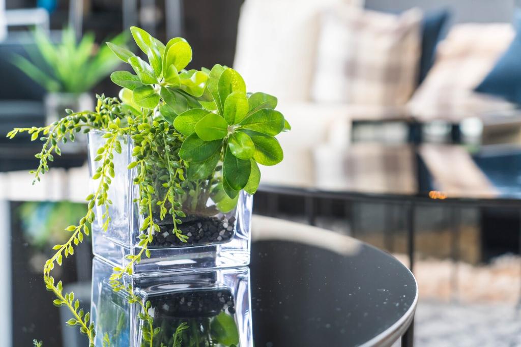 Teile deine Wohnung in Zonen: Konzentriert arbeiten, entspannt wohnen, regenerierend schlafen. Platziere Bogenhanf im Schlafzimmer, ein luftreinigendes Duo im Wohnzimmer und pflegeleichte Ableger im Homeoffice. Beobachte, wo du am freieste n atmest, und berichte der Community von deinen Veränderungen.